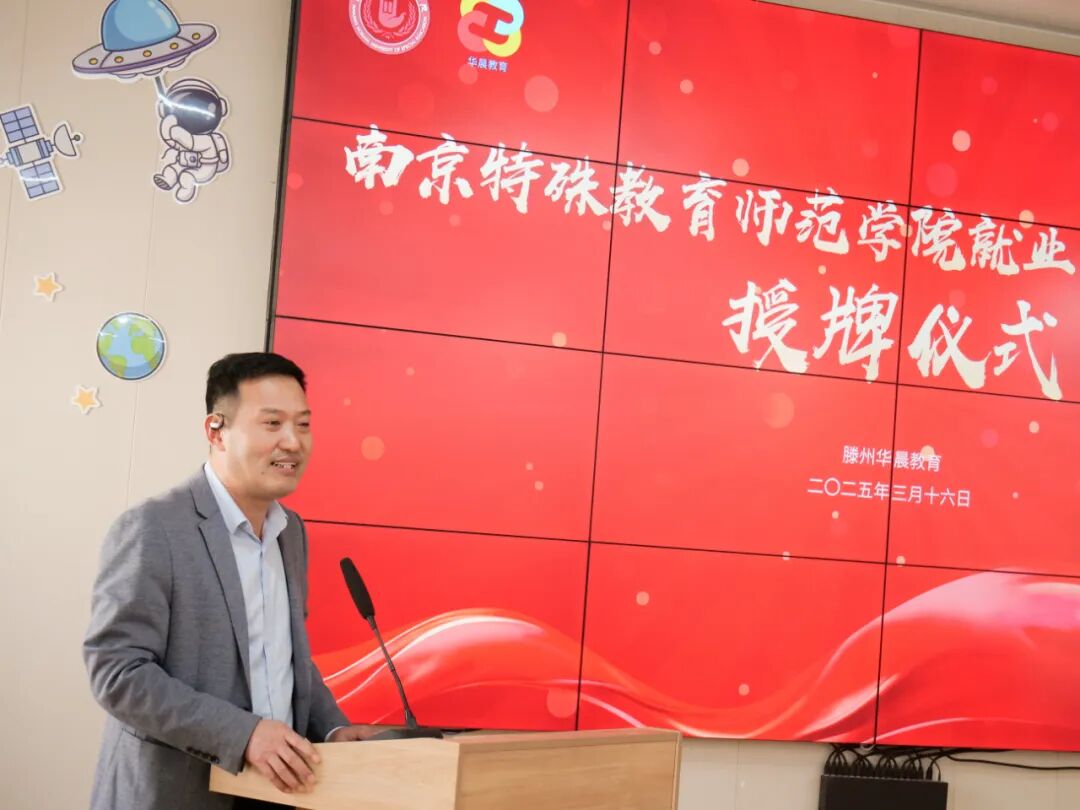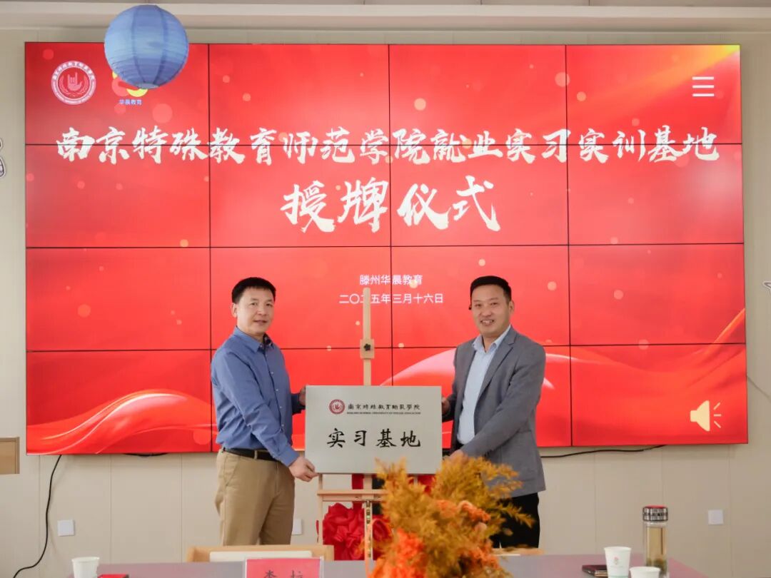 2025年3月16日,南京特殊教育师范学院与滕州滕州华晨教育合作的“实训基地”揭牌仪式在滕州华晨英才未来学园隆重举行。此次活动标志着双方在科学教育、师资培养、实践创新等领域的深度合作正式启动,为特殊教育的发展注入新动能。
